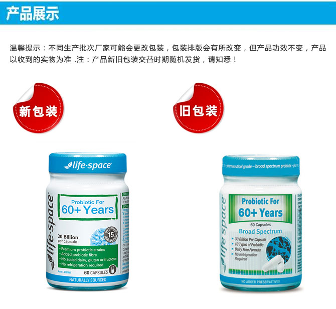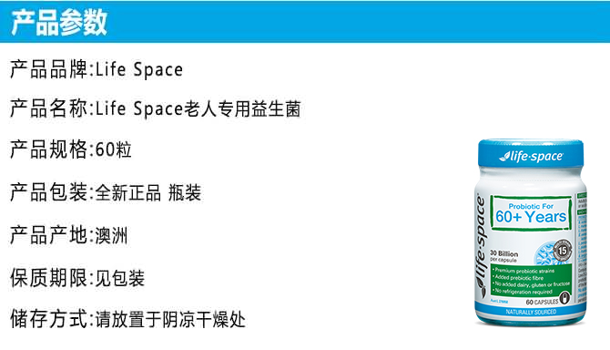 | 英文名称 | Life Space 60 Plus Years Probiotic 60 Capsules |