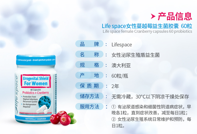 | 产品名 | Life Space 女性专用调节肠道益生菌 60粒 |