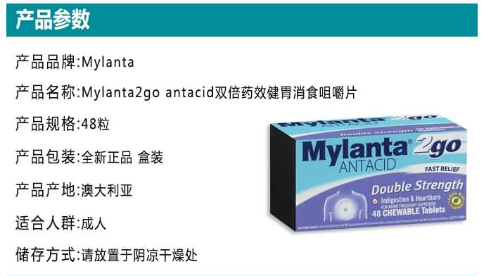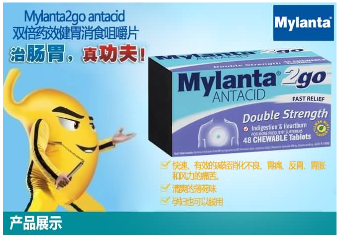 | 产品名 | Mylanta 2go antacid 双倍药效健胃消食咀嚼片 48片 |