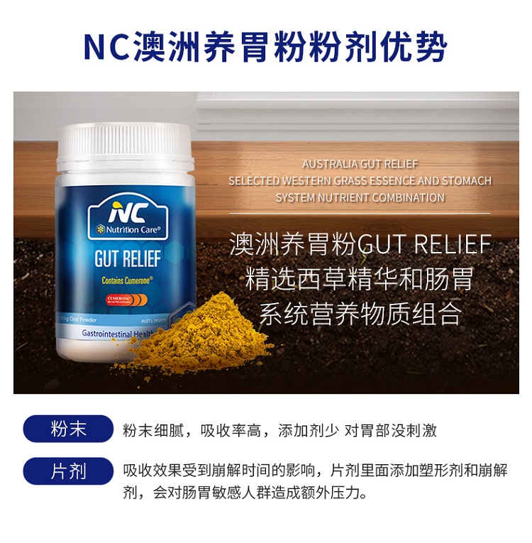 NC 养胃粉是综合草本和营养配方來保护胃肠健康。淡淡的薄荷口味,可溶于温水或果汁后直接服用。