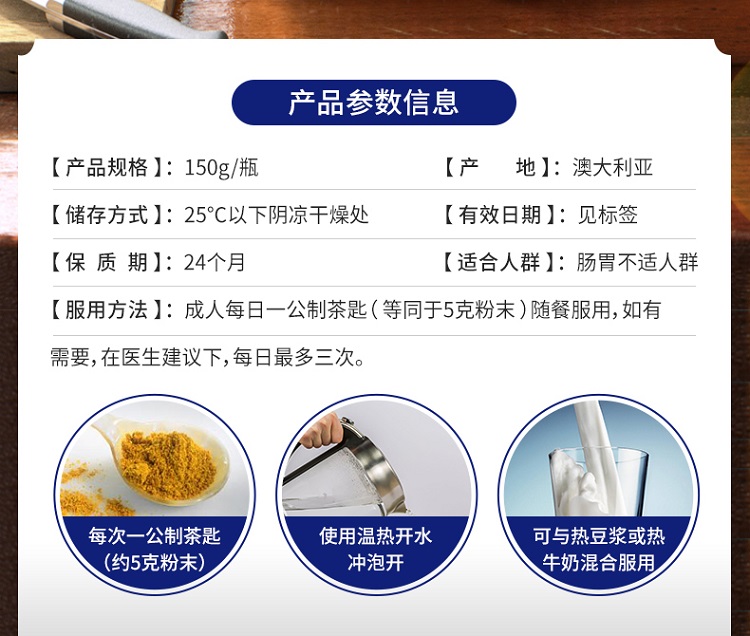 成人将 5 克(一平勺)粉末与水或果汁混合或直接撒在食物上并立即食用;每日随餐服用 1-3 次,或遵医嘱服用。