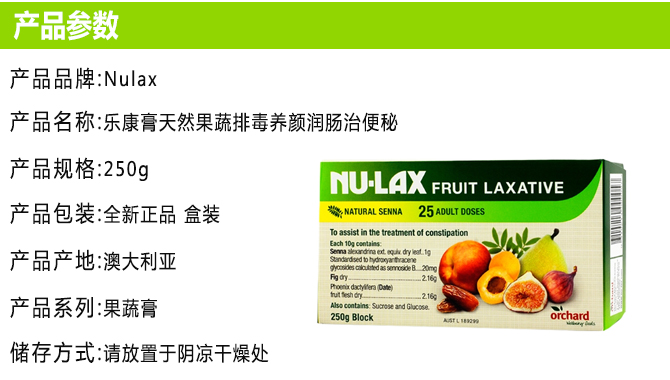 | 产品名 | Nu-Lax 乐康膏 纯天然果蔬膏清理肠道 250g |