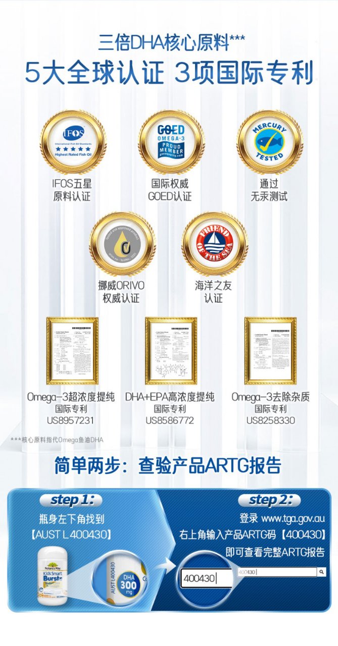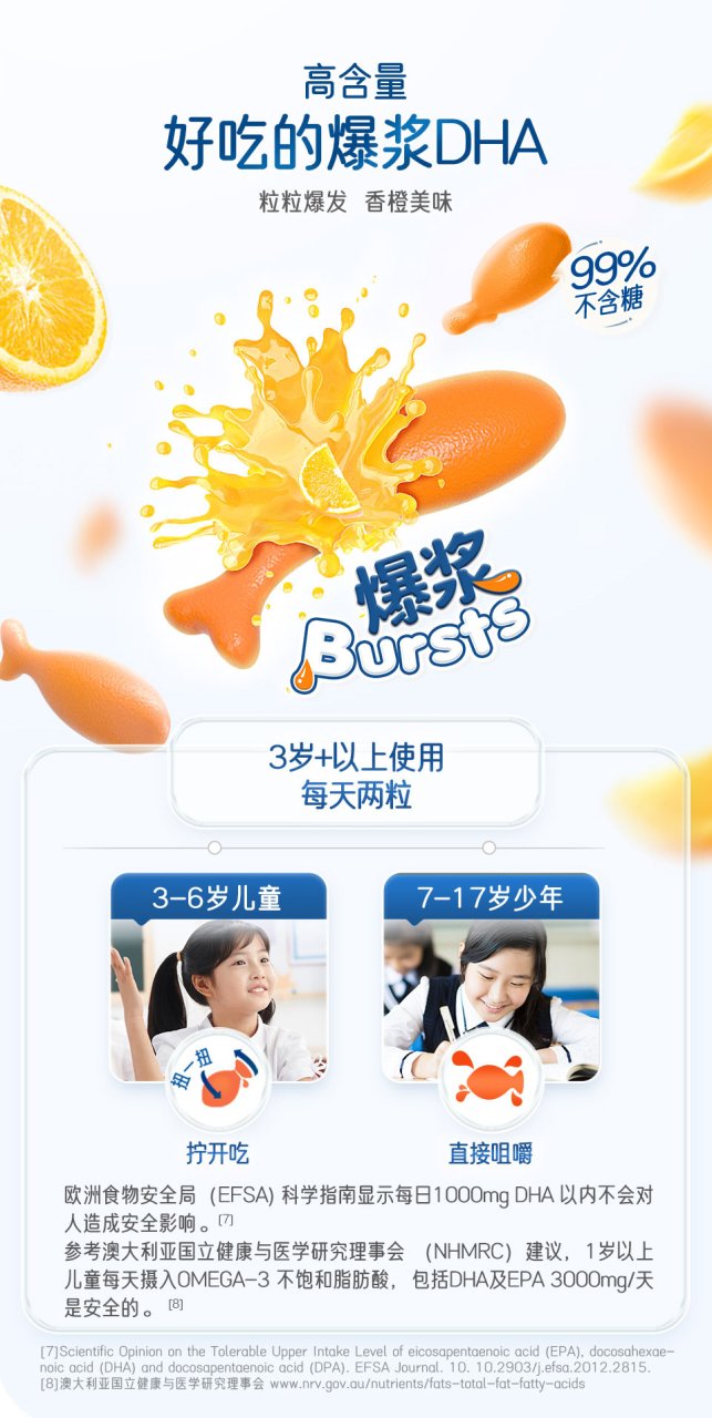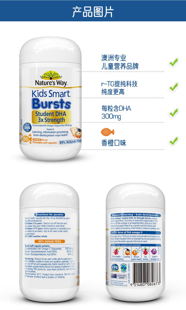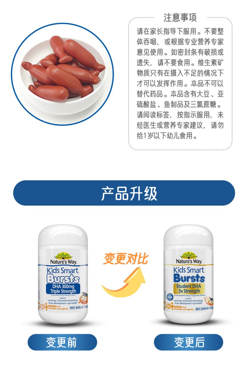 *不用的条目*Nature’s Way 佳思敏学生儿童眼脑黄金3倍DHA鱼油胶囊橙子味 50粒 增强学习记忆力3岁+