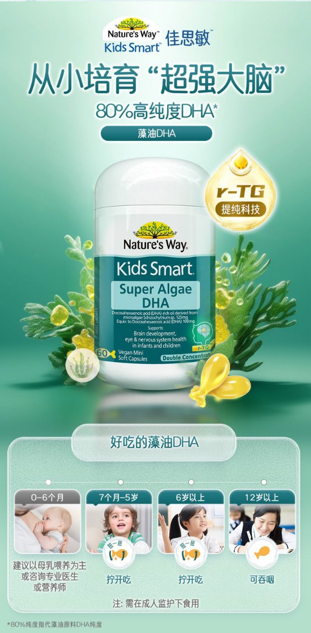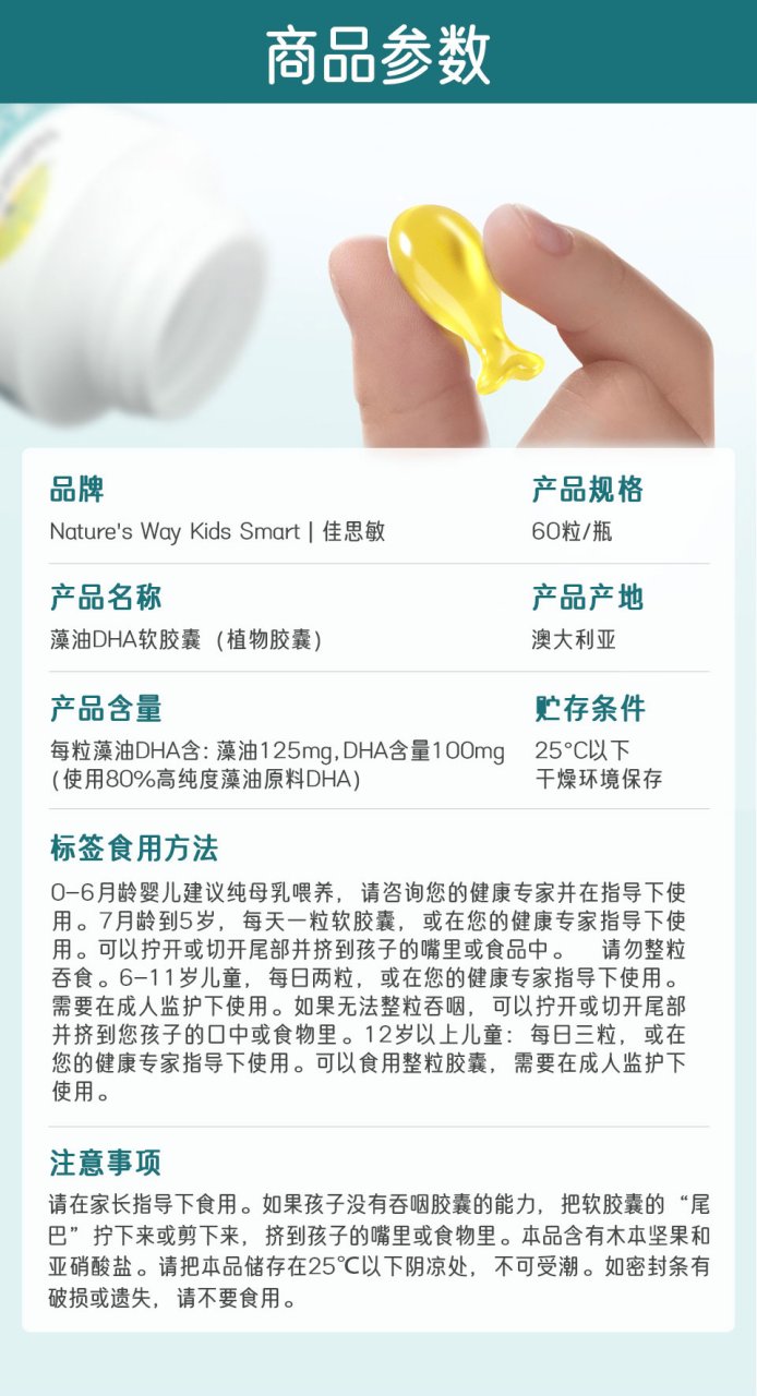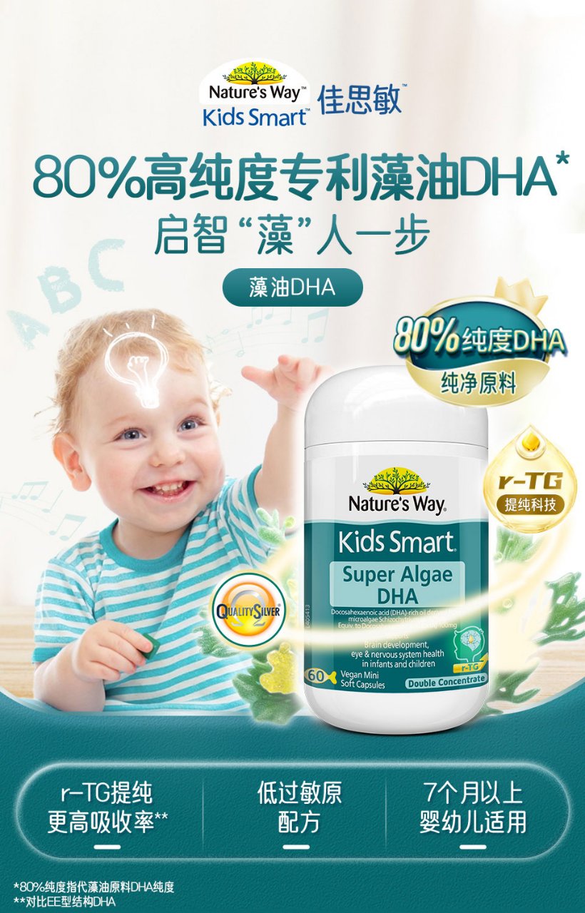 停产 Nature's Way 佳思敏婴幼儿童藻油DHA软胶囊60粒 高纯宝宝补脑