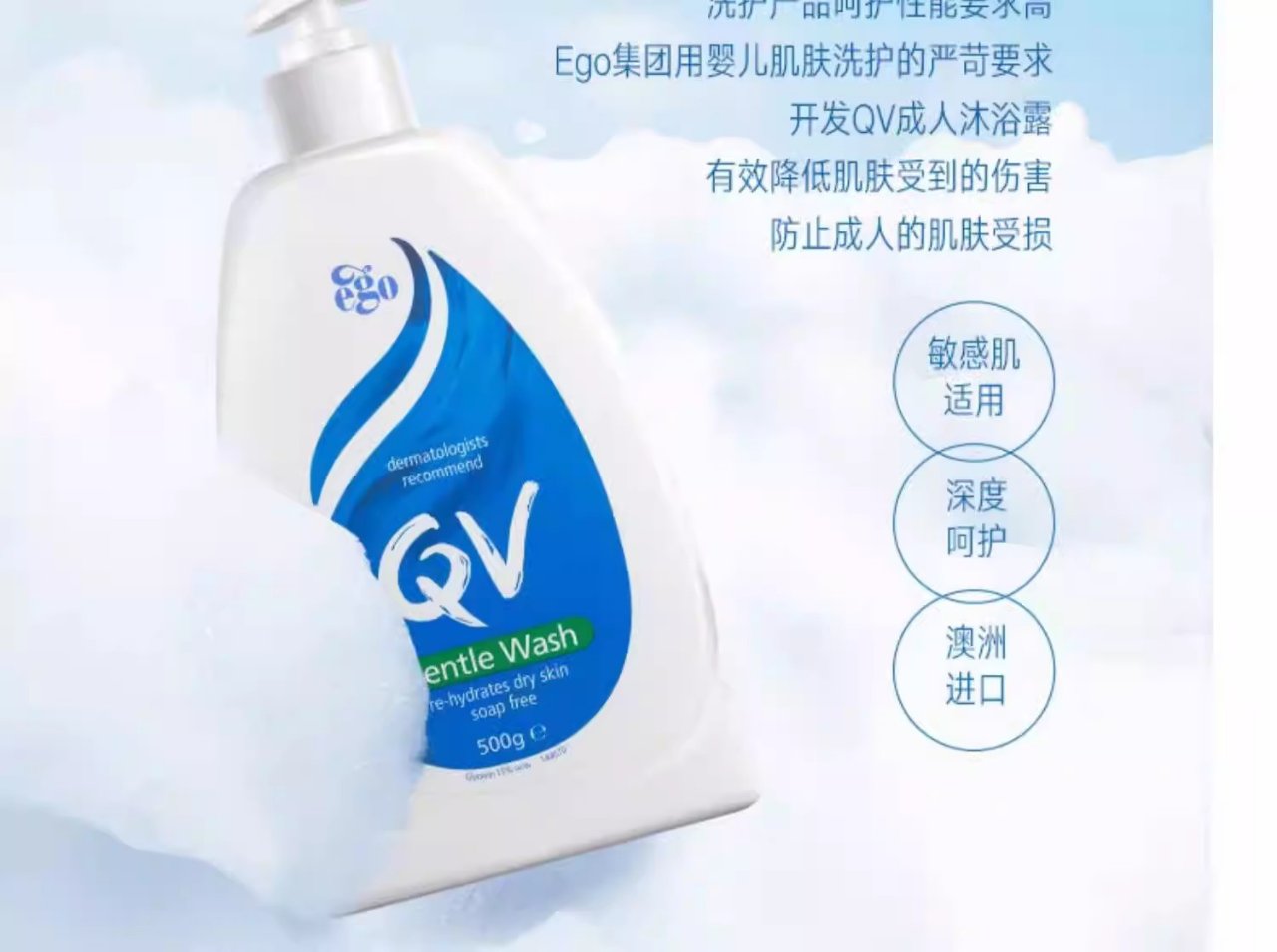 过期免费送🉐QV 温和氨基酸洁面级抑菌沐浴露 500g 孕妇可用 保湿补水 2025-07-31
