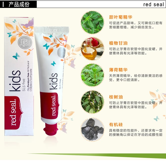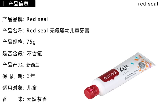 Red seal 红印 儿童天然无氟牙膏 防蛀齿/可吞咽 75g