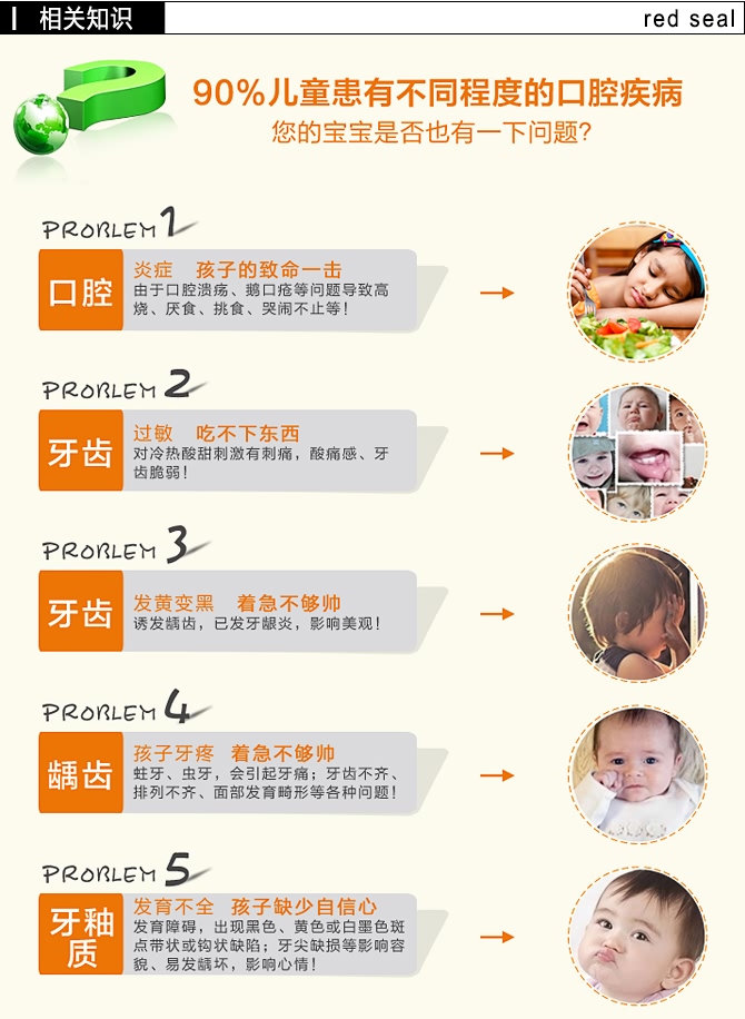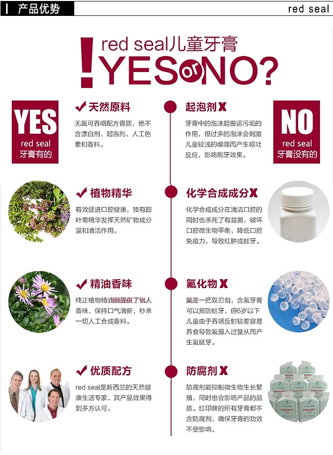 本产品含有软性的牙膏磨料,有效保护宝宝口腔黏膜。含天然草本精华,温和无刺激,即使宝宝不小心吞咽也不会影响健康。不含氟、起泡剂等化学物质,防止造成氟斑牙,影响宝宝口腔健康。有效美白宝宝柔嫩牙齿,长期使用改善宝宝牙黄问题。温和清洁牙齿,强效抑菌。含天然植物精华,有效防止龋齿和蛀牙,保持宝宝健康口腔。温和的天然矿物质,能修复损落牙釉质,提高牙齿抗敏性,即使对牙膏成分过敏的儿童也能放心使用。