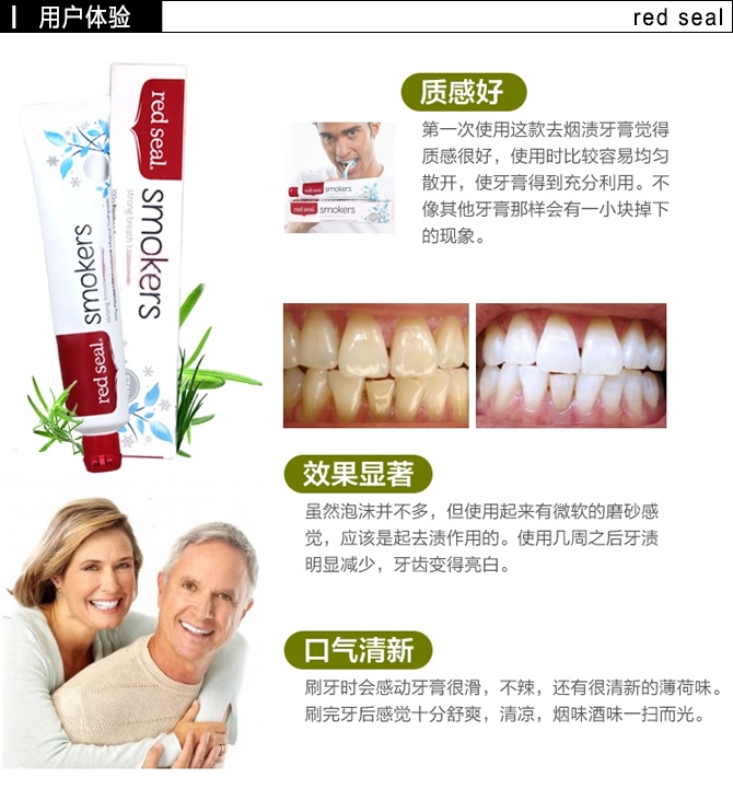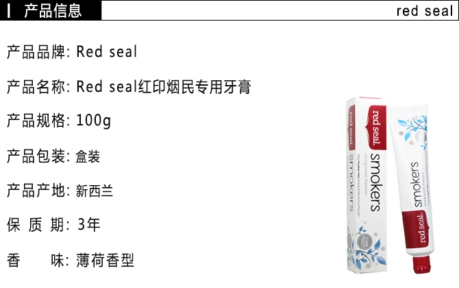 Red seal 红印 去烟渍牙膏 烟民专用/清新口气100g