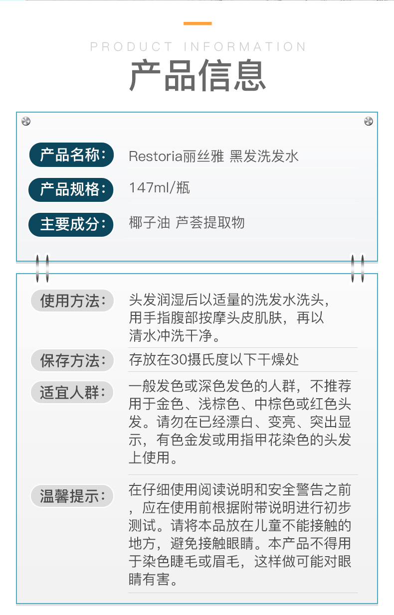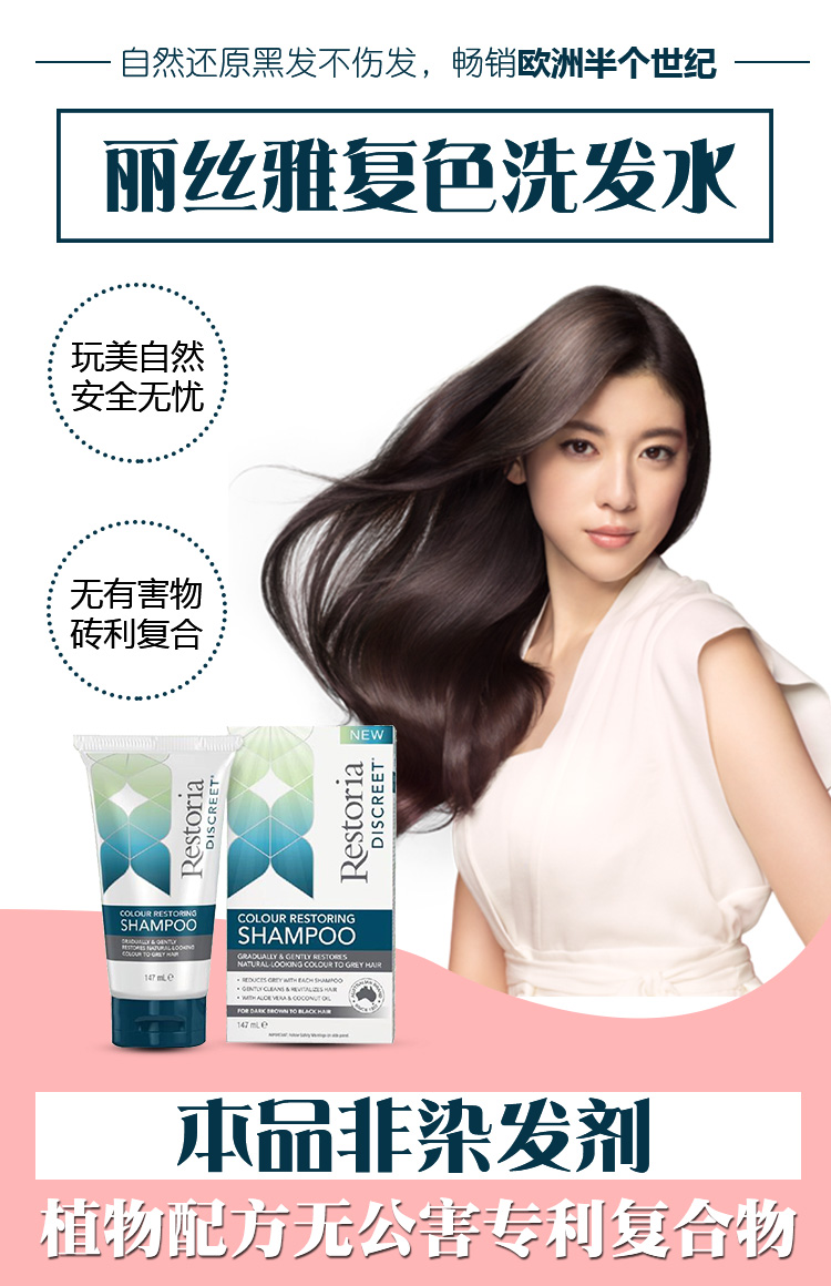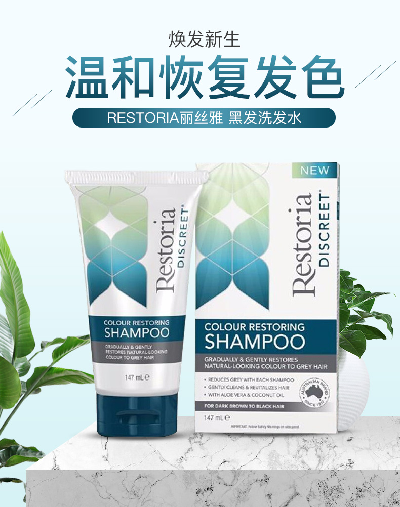 新品️Restoria黑发还原洗发水 你还在为白发困扰吗?澳洲Restoria复色洗发水,告别传统染发,轻松一洗,白发变黑~✔温和配方,头发逐渐变黑✔富含芦荟和椰油,头发健康强韧✔适合深色头发使用