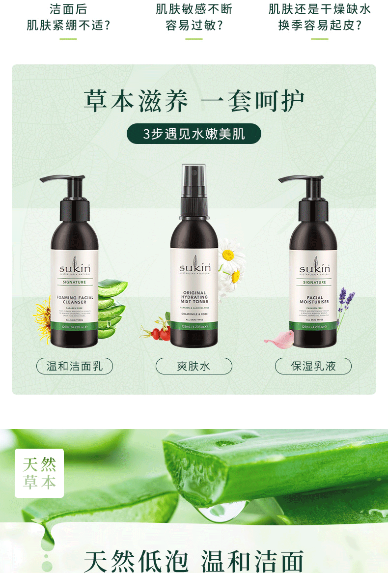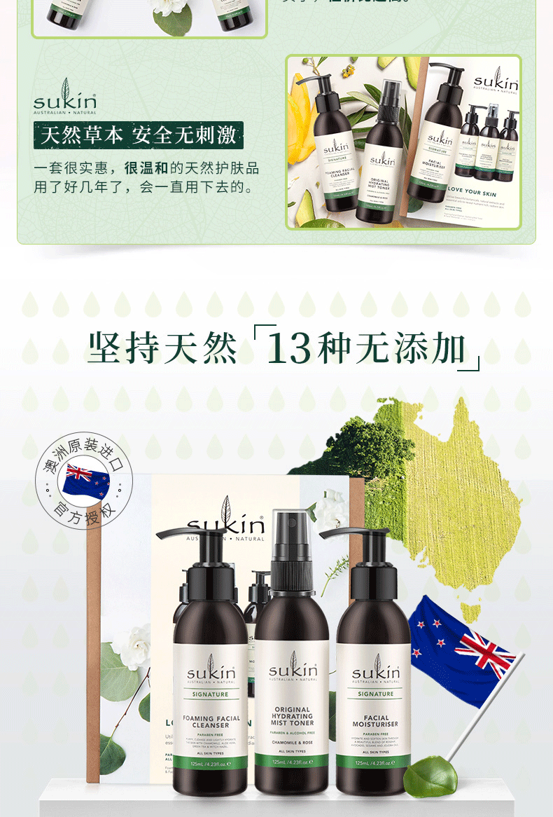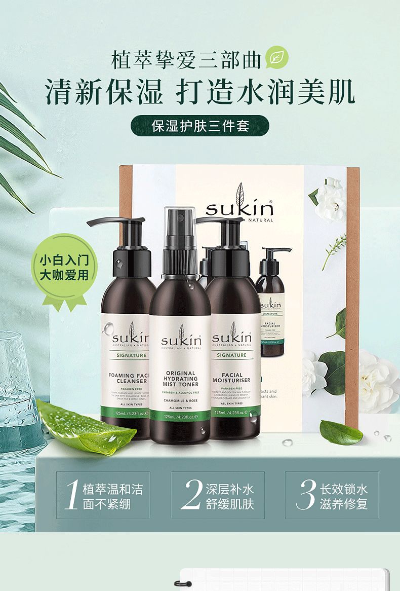 SUKIN护肤三件套(旧版)洁面125ml 喷雾125ml 乳液125ml
