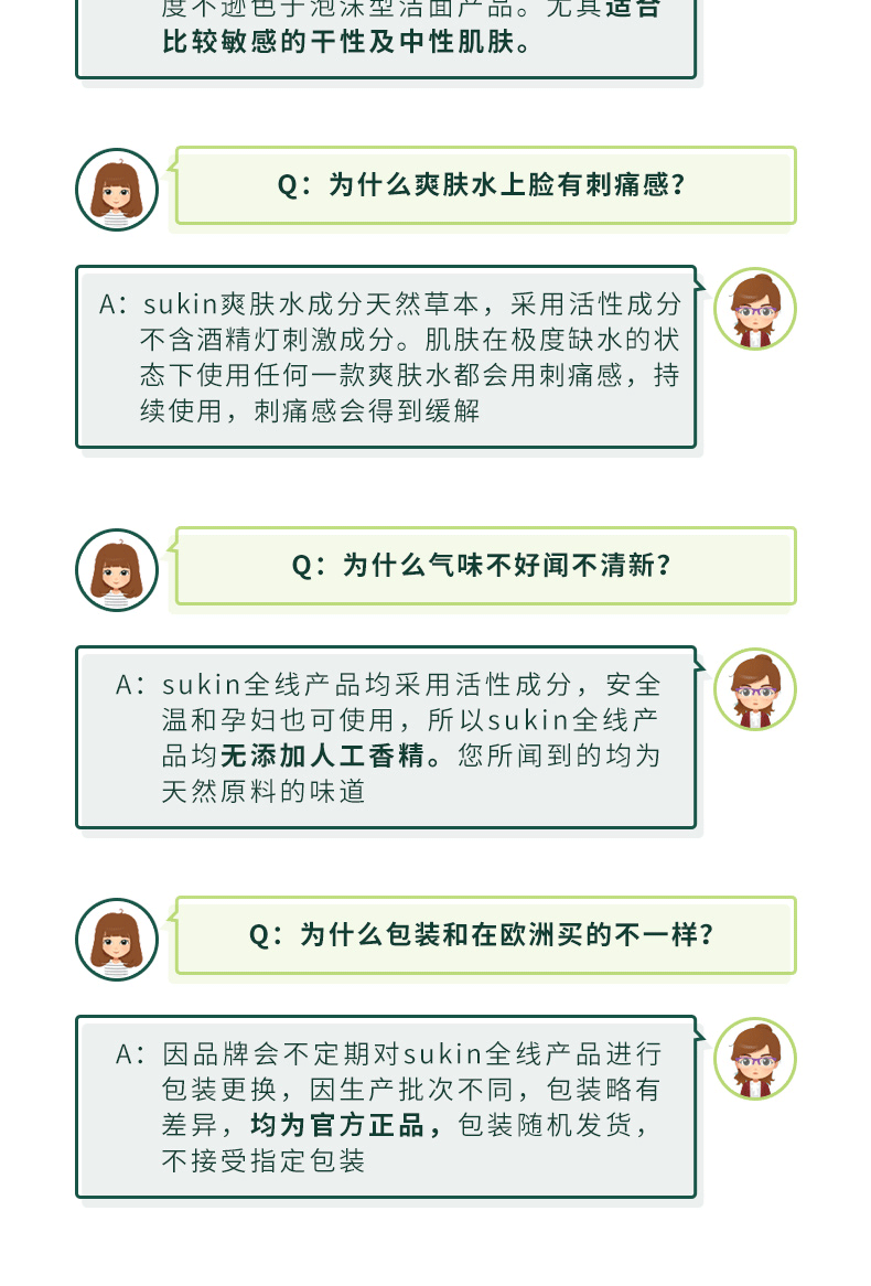 ○ Sukin 苏芊 天然保湿乳液面霜125ml:一款质感轻盈的乳霜,质地介于乳液和霜之间,味道是很淡的植物味,可以在日间或晚间使用。其最大的特点是容易吸收,不油腻,为肌肤补充足够的水份滋养及修护肌肤。其蕴含荷荷巴油、吉拉索芦荟、小麦胚芽油、玫瑰果油、马尾及牛油果油等,能舒缓肌肤,令肌肤感觉柔软舒适。