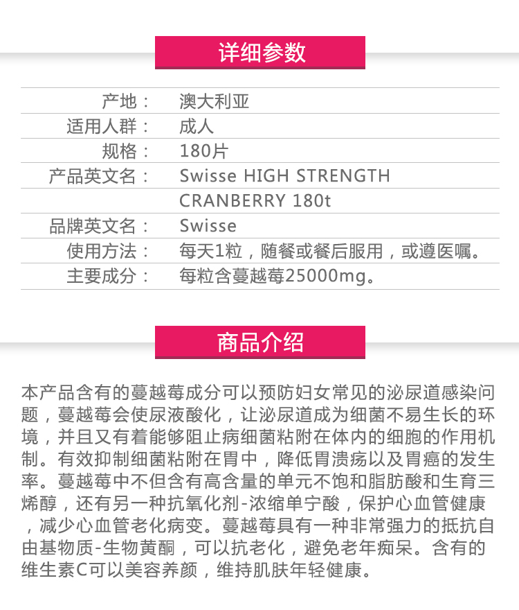 Swisse 高效蔓越莓 180粒