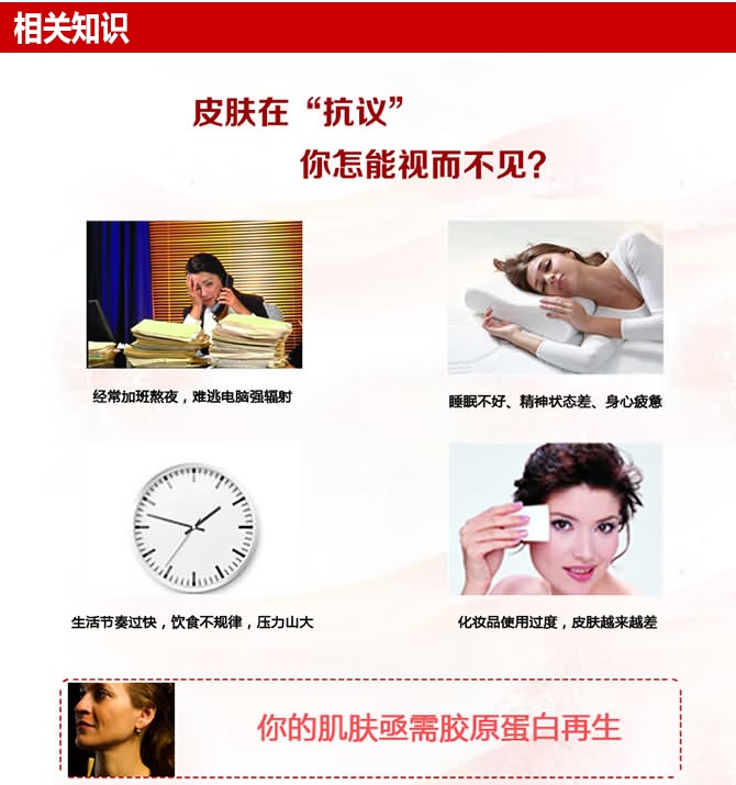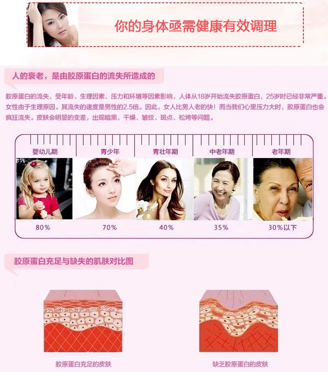 | 功效 | 液体胶原蛋白是一种复杂的配方,含高质量的营养成分去支持胶原蛋白的产生,提供头发,皮肤,指甲必需的营养,胶原蛋白能保湿,滋养,亮肤,紧肤,防皱,修复,营养皮肤的作用。 |