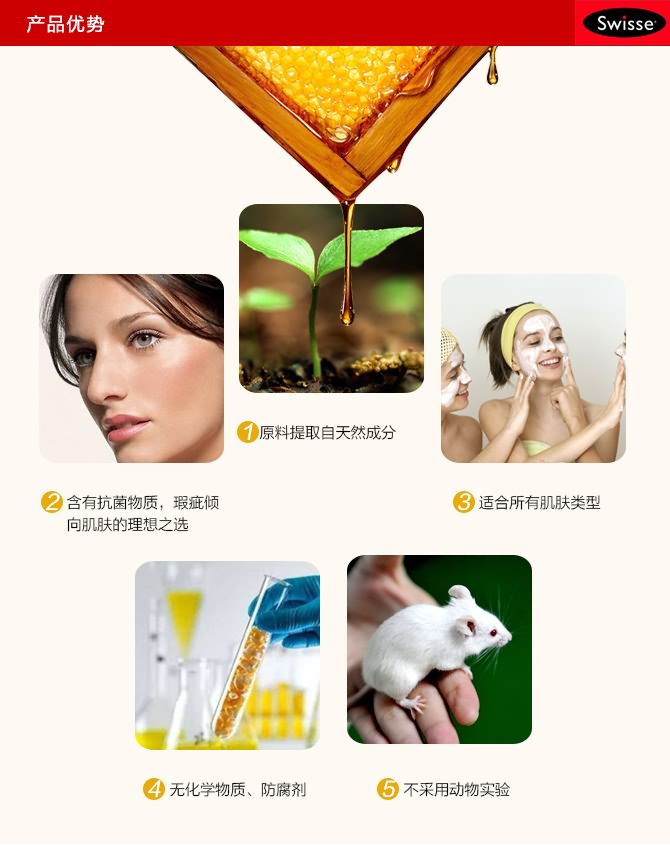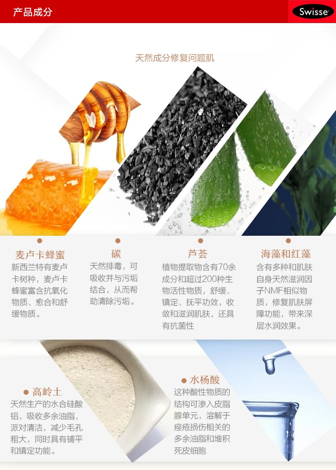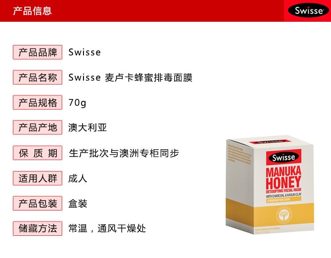 蜂毒不是毒素,而是工蜂毒腺和副腺分泌出的具有芳香气味的一种透明液体,这种液体贮存在毒囊中的蛰刺里,由蛰针排出。可以这样说,蜂毒就是提取蜜蜂身上的毒液。但这种毒液却不会对人体造成伤害,反而是种珍稀的护肤液体。Swisse 麦卢卡蜂蜜排毒面膜是一种有效净化和促进肌肤排毒,用后肌肤感觉光滑、水润。