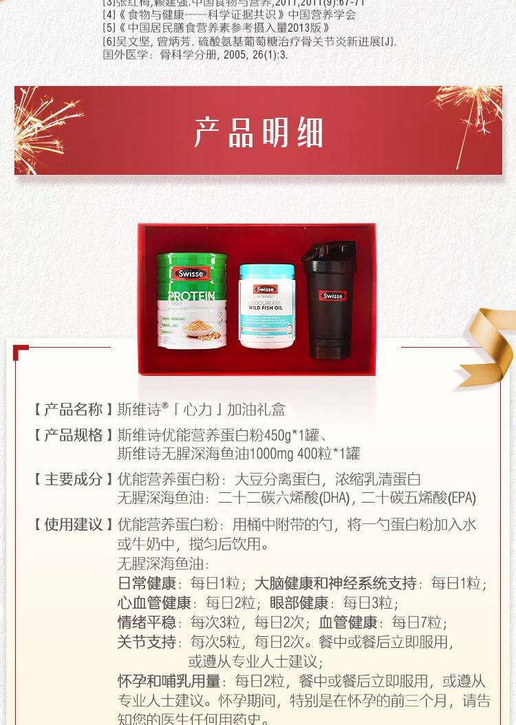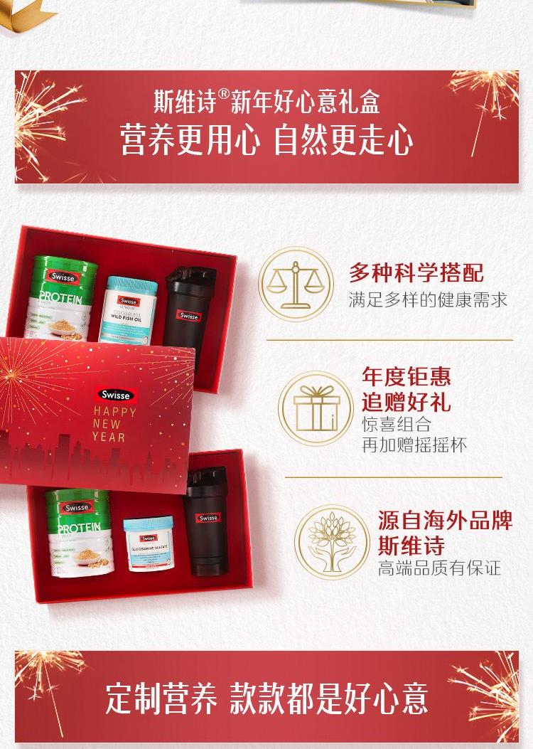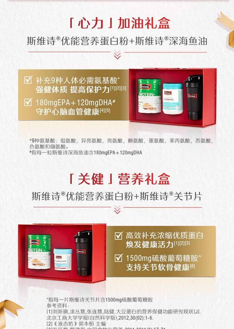 Swisse新年限量套盒,一套包邮,限量1500套,售完即止。活动订单由厂家直发,不提供拍照签字、特殊打包等额外服务。统一物流ewe快递单号将反馈于订单中,请复制单号后登陆ewe官网查询物流轨迹。保质期: 维骨力2023-09 /蛋白粉2023-09