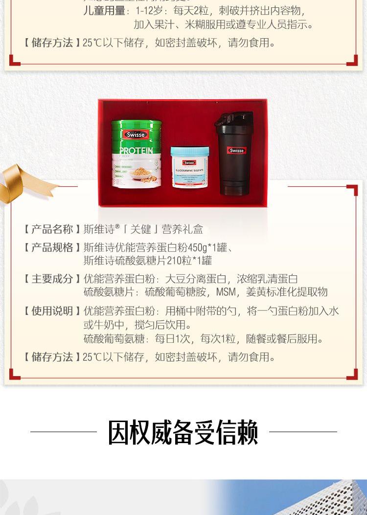 Swisse关健营养礼盒(乳清蛋白粉450g+维骨力210粒+赠限量款摇摇杯)一套包邮