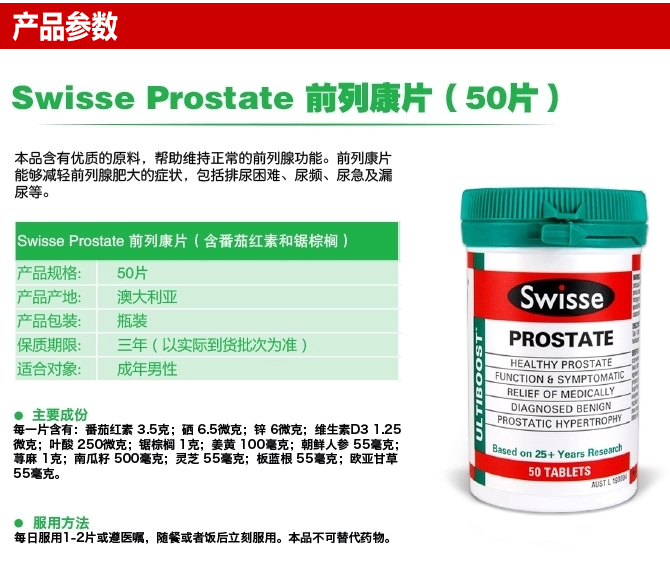 | 产品名 | Swisse 瑞思 男性前列腺保健片 50粒 |