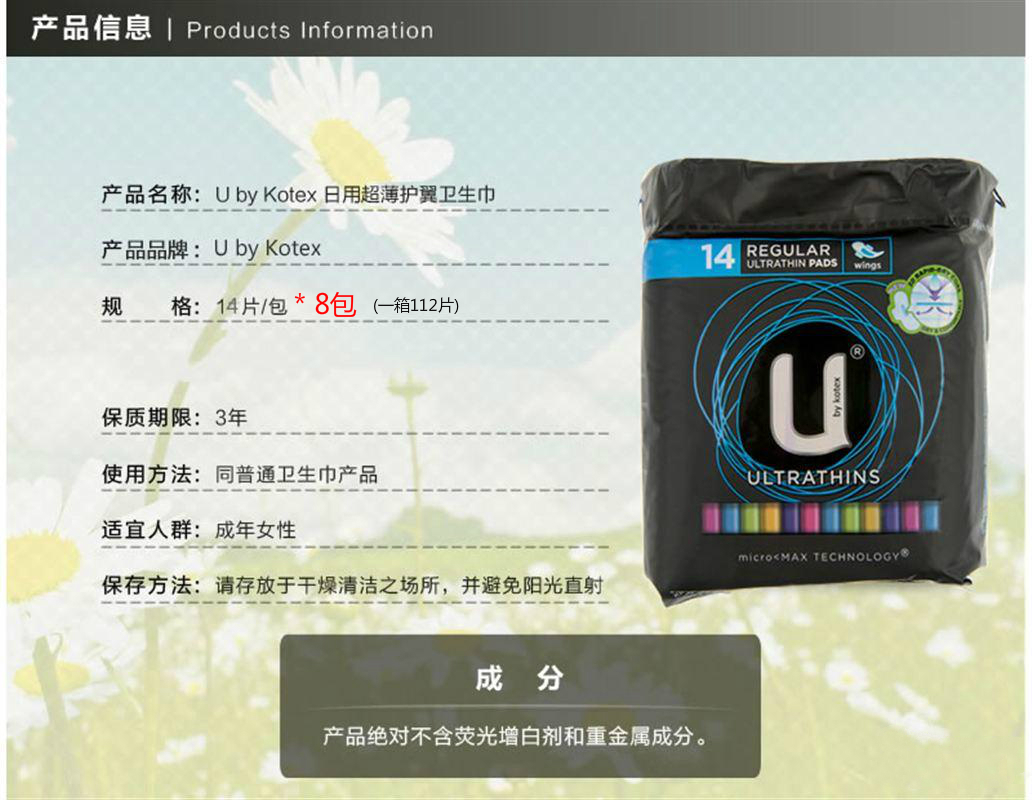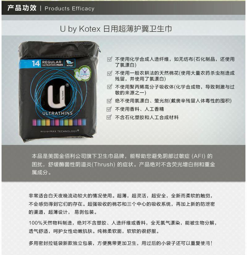 Kotex 高洁丝超薄日用护翼卫生巾。超薄三层设计,三维快速干燥的核心技术,透气性强,即使处在那几天也要轻松做自己。