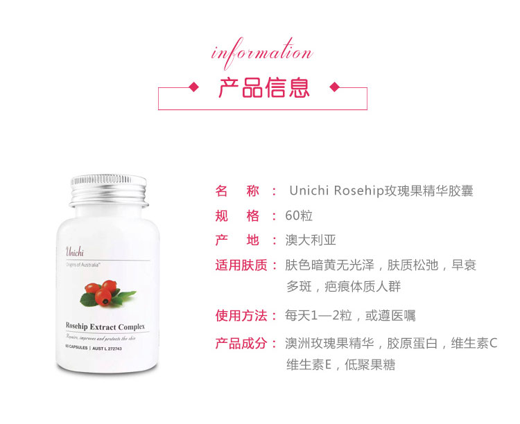 售罄【特价】Unichi 玫瑰果精华胶囊美白丸 一代 60粒 (2023/6/23)