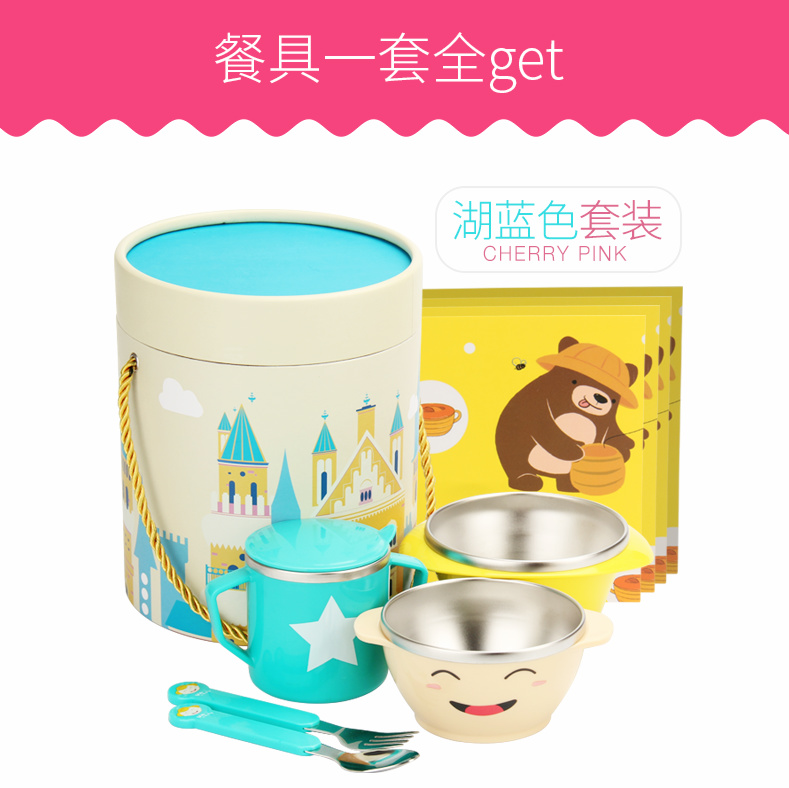 宝贝的专属餐具——小伙伴餐具系列,单体叠加组成,方便收纳又萌趣;304不锈钢,无重金属残留,严选PP材质,每一勺,每一口都放心。水杯防漏便于携带,双手柄隔热防烫碗,无毛刺不上口腔的饭叉,勺头圆润,每一个精致细节转为儿童打造。